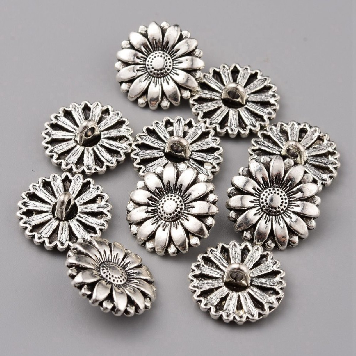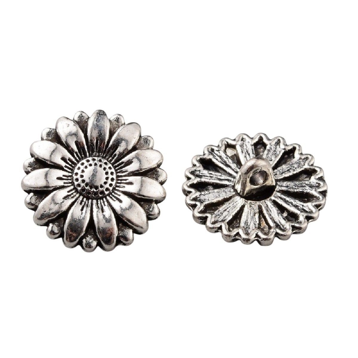 Découvrez nos magnifiques Boutons Tige en métal argenté de 17 mm, au design délicat en forme de Fleur. Ces petits bijoux sont l'accessoire indispensable pour apporter un cachet chic et raffiné à vos vêtements, sacs ou accessoires décoratifs.