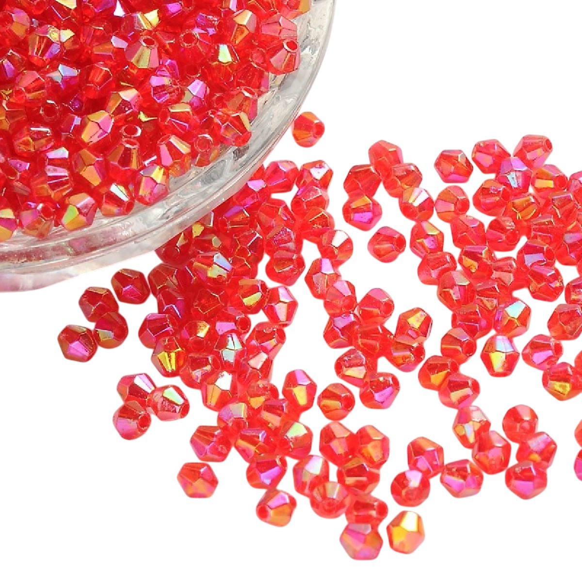 Sublimez vos créations avec l'éclat irrésistible de nos perles toupies bicones à facettes. D'un rouge vibrant et passionné, ces perles de 6 mm captent la lumière sous tous les angles grâce à leur finition AB, offrant des reflets irisés magiques et changeants.