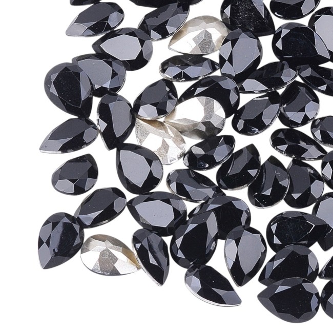 10 PERLES STRASS CABOCHON Goutte à Facettes Noir 10 x 14 mm - Acrylique - Dos Pointu - Creation Diy